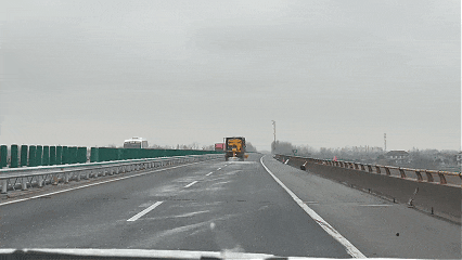 ▲高警三支隊聯合養護單位在瓷泥湖大橋開展融雪撒布作業