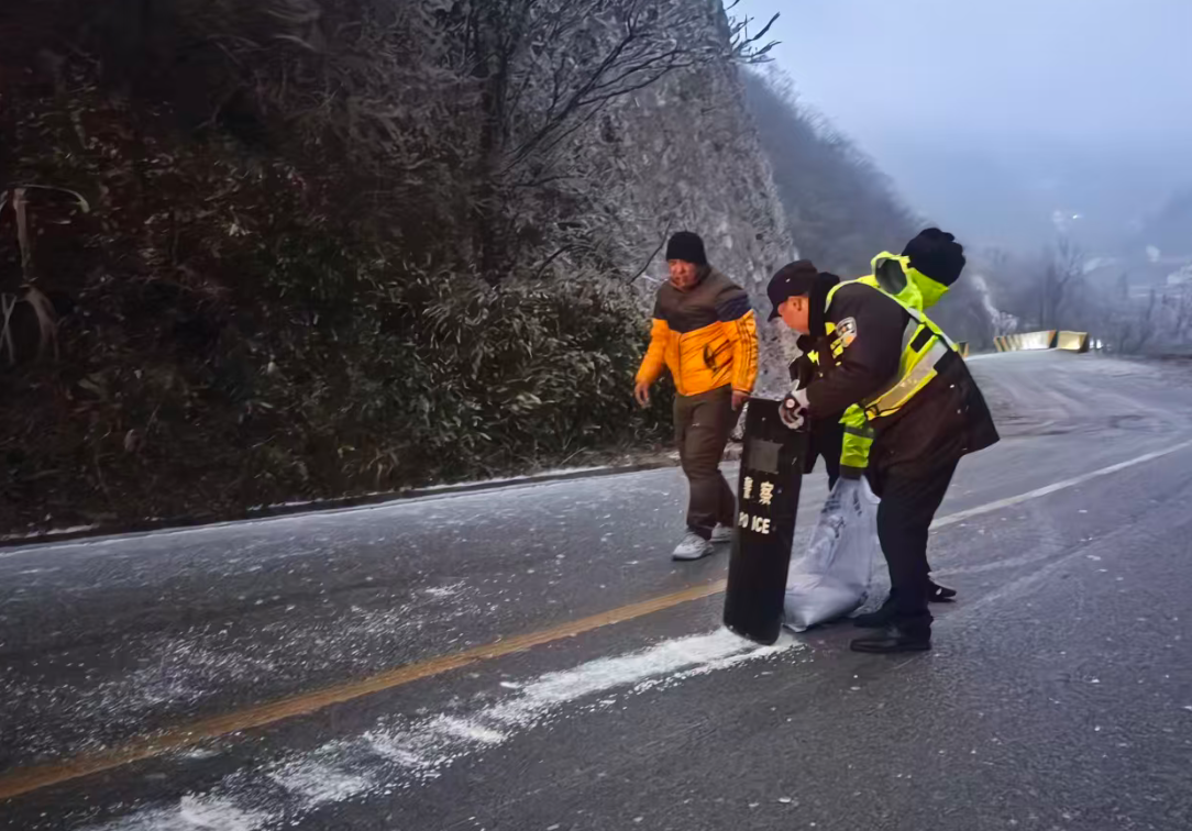 各地交警堅持“早預警、早準備、早處置”原則,在易結冰橋梁、隧道、陡坡等重點路段提前布防,撒布融雪劑,全面排查隱患,筑牢第一道安全防線。