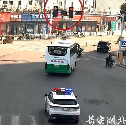 13時16分23秒,客車與警車順利匯合,一場與時間賽跑的護送正式展開。13時18分28秒,鐵騎輔警王煥然在湖濱大道人社局路口與客車匯合,港發(fā)大廈路口執(zhí)勤警力同步疏導交通、指揮通行。13時19分20秒,車輛行至老虎頭路口,為搶抓救治時間,在確保行車安全的前提下,鐵騎開道依規(guī)闖過1個紅燈。