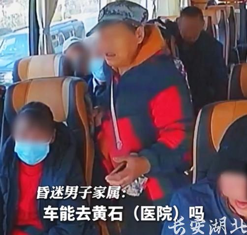 “他昏迷了!車能往黃石開嗎?”1月15日12時52分,一輛從浠水開往散花的客車上,一名乘客突然昏迷,家屬哭著向客車司機程師傅求助。