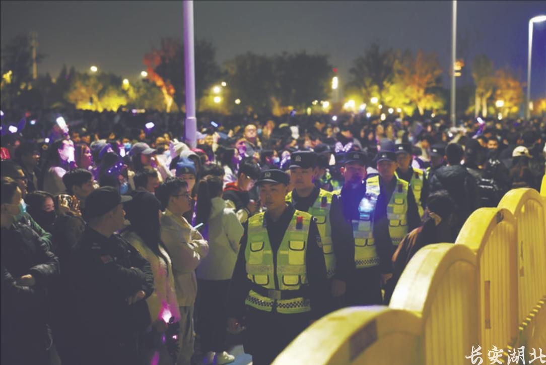 近日,湖北省武漢市公安局東湖生態旅游風景區分局民警輔警在游園活動現場巡邏。