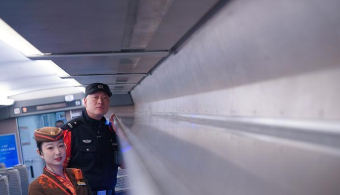 列車(chē)抵達(dá)終點(diǎn)站后,羅晨林會(huì)同列車(chē)員對(duì)車(chē)廂內(nèi)行李架進(jìn)行檢查。李鵬翔攝