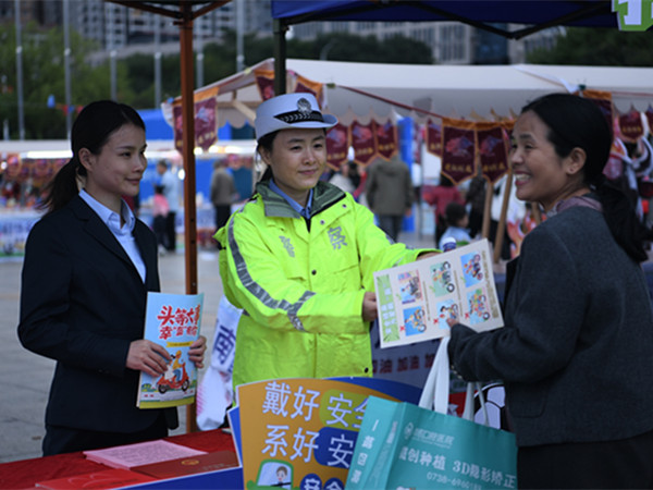 織密交通宣傳“安全網”。(在湘超比賽期間,婁底市公安局交警支隊持續開展“頭等大事、幸盔有你”道路交通安全宣傳。)