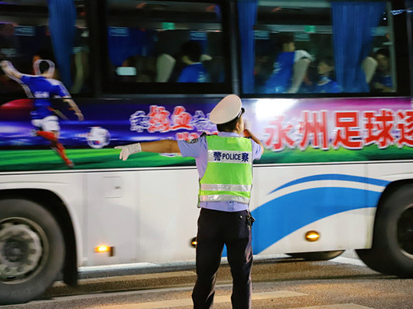 精準管控保暢通,高效疏導護平安。(10月3日,“岳陽VS永州”賽程,岳陽公安交警全員上崗,全力做好交通疏導工作,確保球迷開開心心觀賽、平平安安到家。)