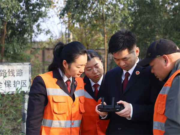 以科技賦能監督,檢察官借助無人機,與鐵路工作人員一起對鐵路沿線整改情況開展“回頭看”。?