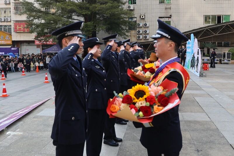 致敬環(huán)節(jié)把活動(dòng)氣氛推向高潮。10位從警30載40載的民警代表登臺(tái)接受紀(jì)念獎(jiǎng)?wù)隆!皬木?0年,我親歷了河池公安的高質(zhì)量發(fā)展,更見(jiàn)證了祖國(guó)繁榮昌盛,我感到非常自豪。”刑偵支隊(duì)民警劉星遙動(dòng)情說(shuō)道。
