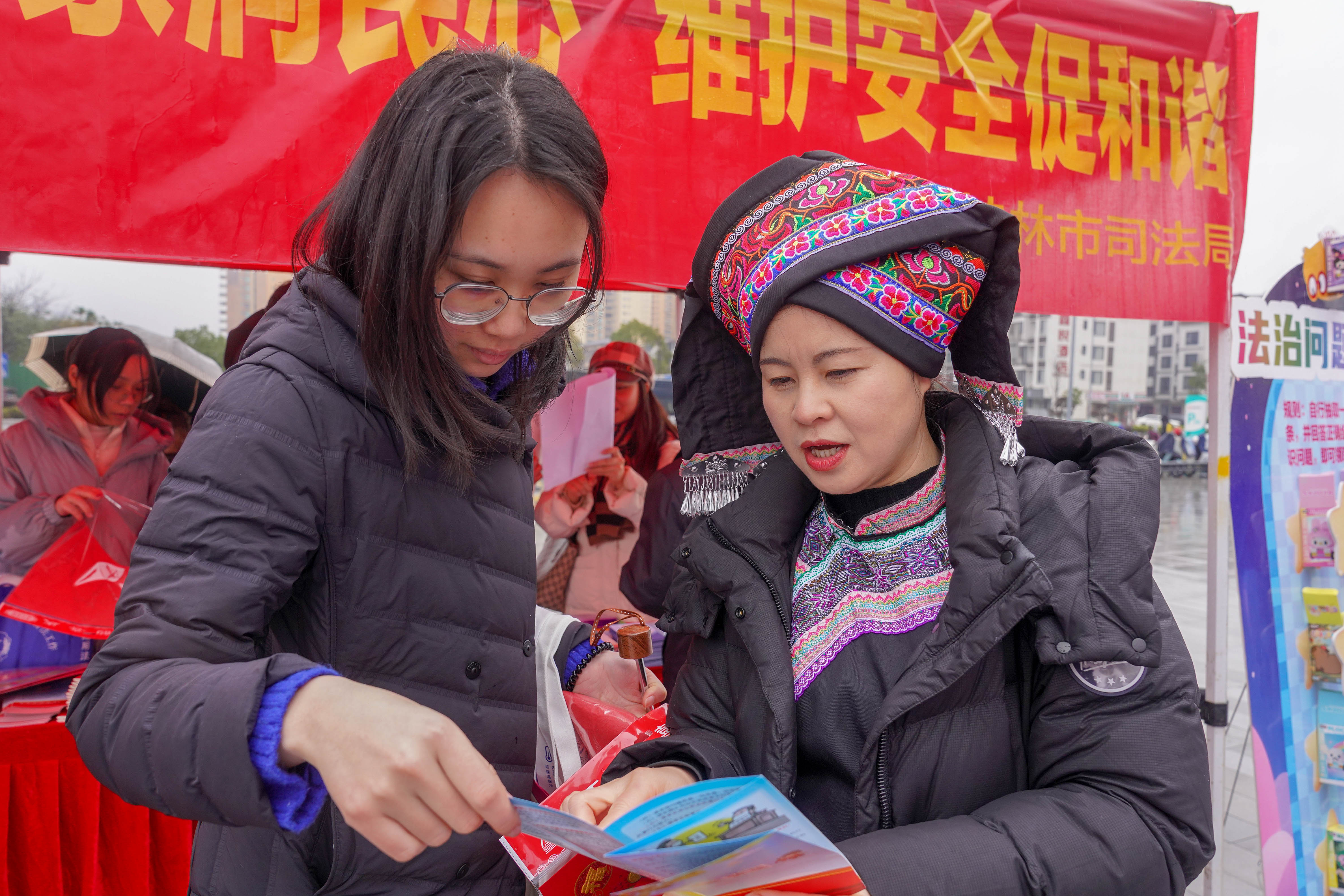 儀式現(xiàn)場,一幅融合了馬年生肖、桂林山水與“平安桂林、法治桂林、文明桂林”三大主題元素的巨幅背景板格外醒目。市文明辦宣讀《“移風(fēng)易俗樹新風(fēng)”倡議書》,倡議市民從自身做起,做到喜事新辦、文明飲酒、余事不辦、一切從簡,自覺摒棄攀比浪費(fèi)、大操大辦等舊習(xí),恪守文明公約,遠(yuǎn)離黃賭毒,杜絕斗毆滋事,爭當(dāng)文明新風(fēng)的倡導(dǎo)者、傳播者和實(shí)踐者。隨后,來自公安、律師和市民的三位代表依次上臺,結(jié)合自身實(shí)際,用“‘群眾過年、公安過關(guān)’的擔(dān)當(dāng),全力投入社會治安防控,嚴(yán)厲打擊各類犯罪,快速響應(yīng)群眾求助,切實(shí)守護(hù)萬家燈火。”“忠于憲法和法律,恪守律師職業(yè)道德,將持續(xù)參與公益法律服務(wù)、矛盾糾紛調(diào)解等工作,以法律人的言行帶動(dòng)尊法守法、誠信友善的社會風(fēng)氣。”“爭做平安桂林的積極參與者、法治桂林的踐行者和文明桂林的傳承者,從自身做起,從點(diǎn)滴做起,主動(dòng)參與環(huán)境清掃、關(guān)愛身邊困難群體、弘揚(yáng)傳統(tǒng)美德,用實(shí)際行動(dòng)守護(hù)家園的潔凈與安寧。”發(fā)出鏗鏘有力的鄭重承諾,表達(dá)踐行法治、守護(hù)平安、弘揚(yáng)文明的共同決心。