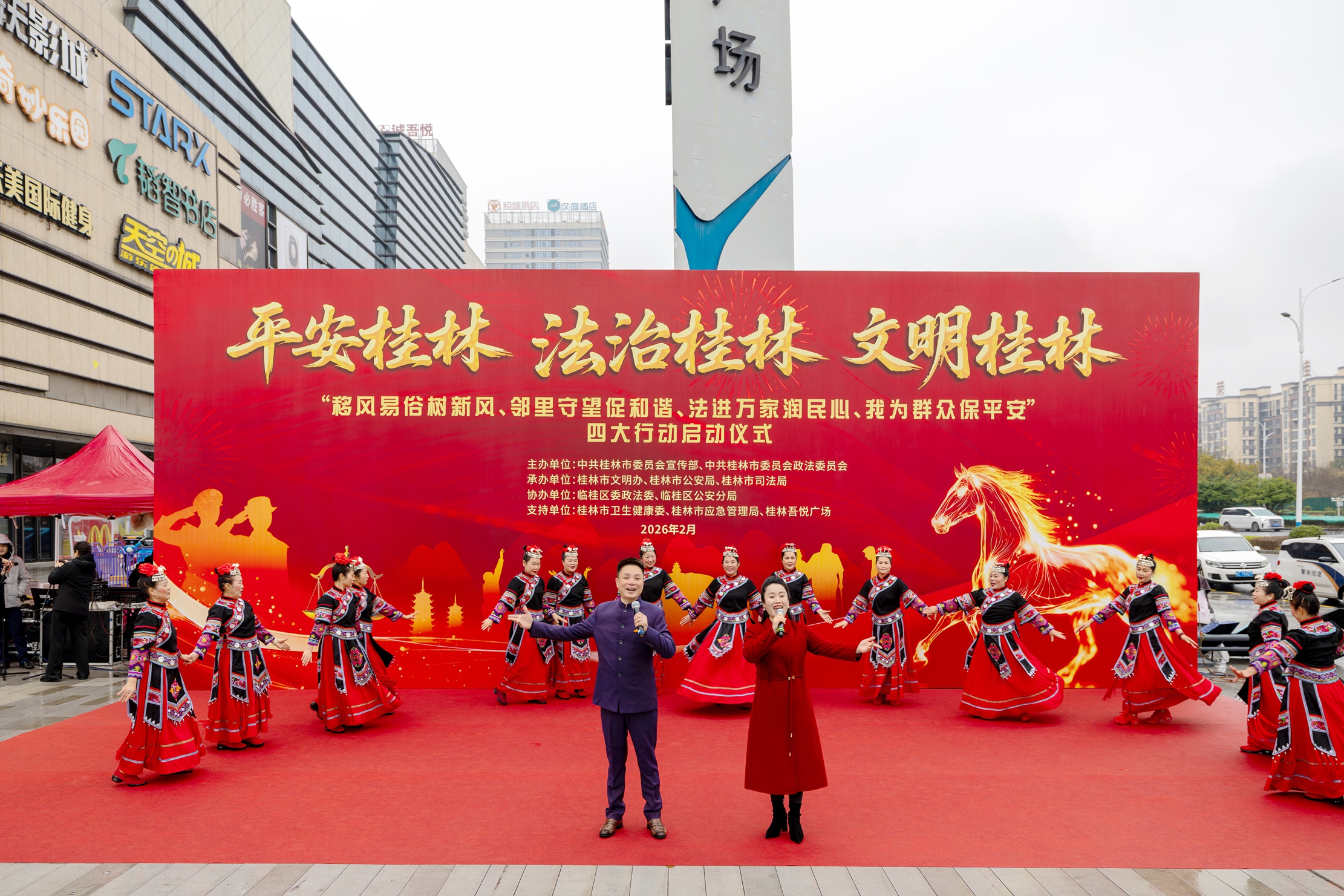 初春的桂北大地,乍暖還寒。廣西壯族自治區(qū)桂林市臨桂區(qū)吾悅廣場卻暖意涌動(dòng)、人頭攢動(dòng)。2月10日,一場以“平安桂林 法治桂林 文明桂林”為主題的新春系列行動(dòng)啟動(dòng)儀式在這里熱烈且隆重地啟幕。