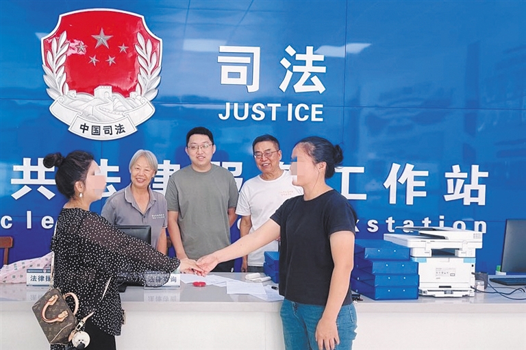 雙方當(dāng)事人握手言和。(白馬井鎮(zhèn)綜治中心供圖)