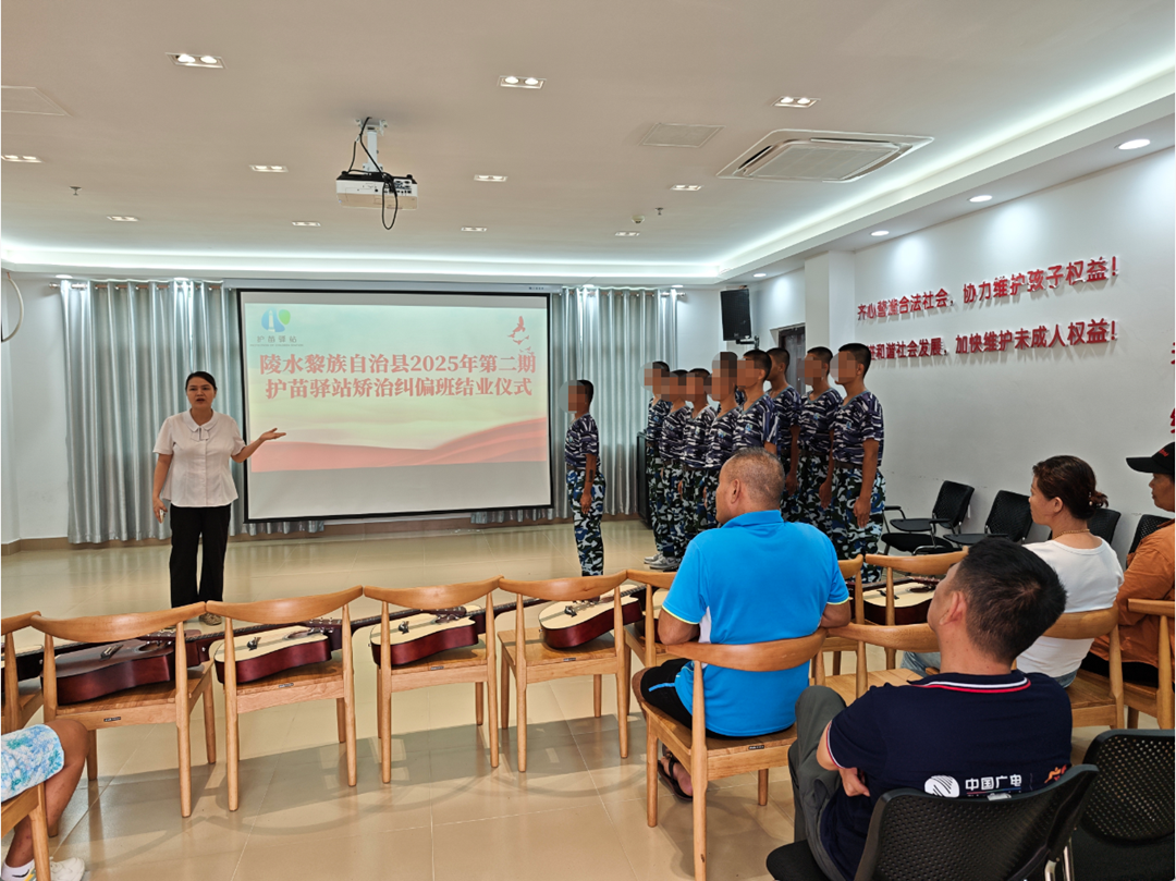 陵水縣委政法委副書記陳小瑞給予結(jié)業(yè)未成年人鼓勵和期許。