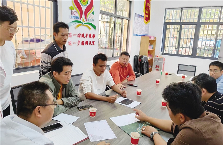 “土地是老百姓的命根子,不能讓老糾紛絆住發(fā)展的腳步。”兩個(gè)鎮(zhèn)的綜治中心迅速達(dá)成共識,由兩個(gè)鎮(zhèn)的鎮(zhèn)長牽頭,抽調(diào)兩個(gè)鎮(zhèn)的綜治、司法、資規(guī)、農(nóng)業(yè)農(nóng)村等部門和萬寧法院和樂法庭的骨干力量,聯(lián)合成立專項(xiàng)調(diào)解外調(diào)組,展開一場為期2個(gè)多月的攻堅(jiān)行動(dòng)。