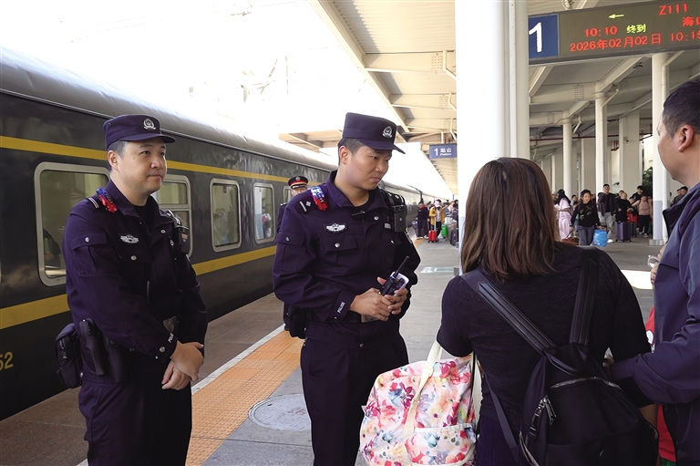 一句句暖心的問候,一次次貼心的服務……春運首日,客流量逐漸攀升,民警們忙碌的身影從未停歇,他們出現在每一個需要幫助的瞬間,帶著春聯、福字,將新春祝福與平安出行、反詐、禁毒等實用知識“打包”,送到旅客手中,用溫情守護“團圓路”,讓返鄉之旅既有“年味兒”,更有“安全感”。(呂書圣)