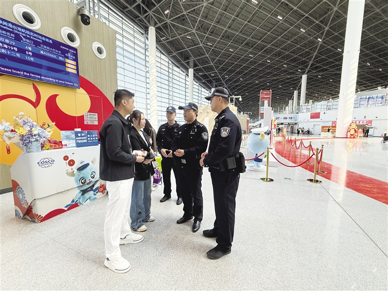 2月2日,省公安廳港航公安局??谛潞8叟沙鏊窬蚵每推占胺辣I、反詐等安全知識。記者連蒙 攝
