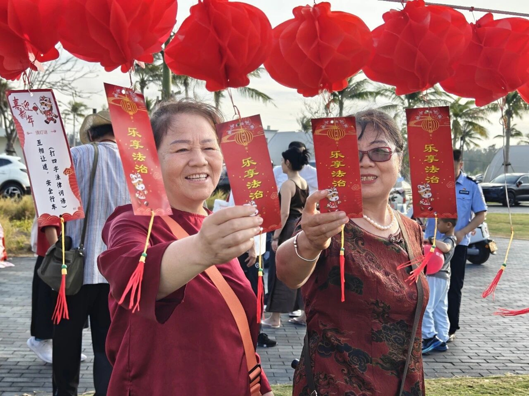 “我們打造了‘法治護航自貿港’主題花車,把法治元素融進非遺花燈,就是希望群眾在逛花燈、玩游戲的過程中,潛移默化地學習到法律知識,感受到法治就在身邊。”縣司法局副局長陳思瑤表示,此次活動通過“文化+法治”的形式,拉近了政法單位與群眾的距離,讓法治走到老百姓身邊、走進老百姓心里。(覃創源 陳太東)