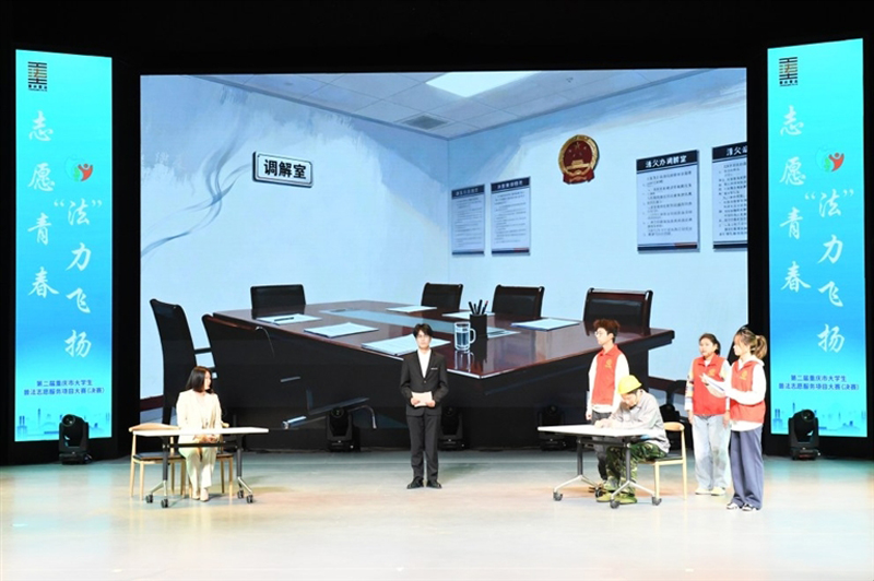 11月19日,由重慶市司法局、市委社會工作部、市教委、團市委、市普法辦聯合主辦,合川區司法局、重慶移通學院共同承辦的第二屆重慶市大學生普法志愿服務項目大賽決賽在此舉辦。