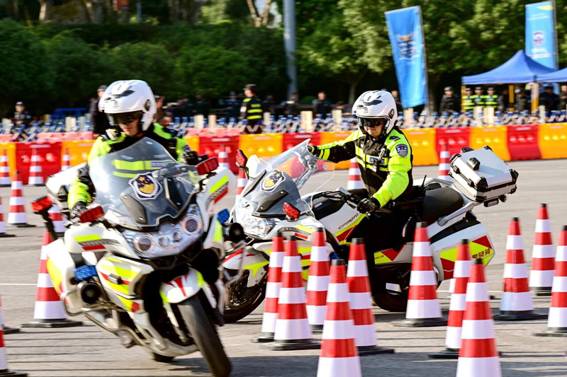 “渝警驍騎”隊伍在路面交通管理、突發事件處置、警衛安全保障、緊急情況救助等工作中發揮了重要作用。“渝警驍騎”實戰技能賽場上,驍騎隊員熟練駕駛摩托車精準轉向、適時剎車加速,靈活穿梭之字樁、環形8字樁、限寬直角樁、梅花樁等競賽路線,快速高效疏導交通、處理事故,充分展示了驍騎隊員面對復雜交通狀況時的應急處置能力。