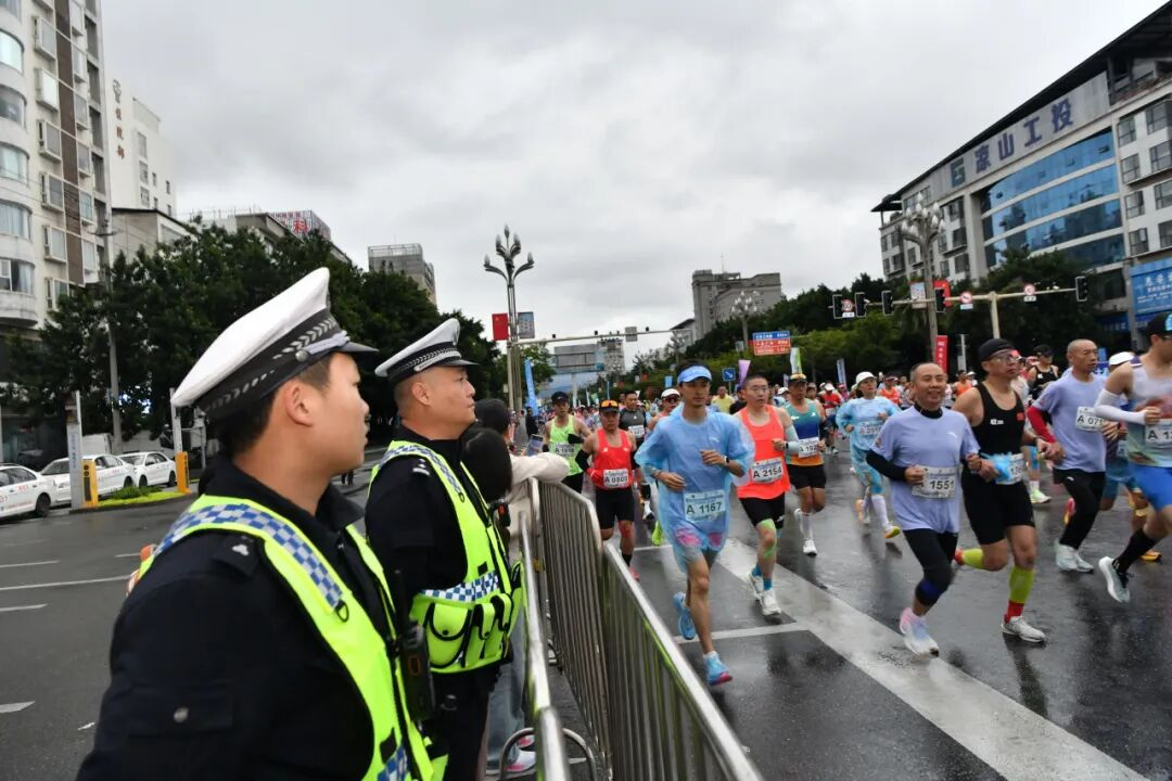 比賽開(kāi)始后,民輔警挺拔的身影化作賽道旁的安全“路標(biāo)”,串聯(lián)成賽道內(nèi)外最動(dòng)人的風(fēng)“警”線,讓跑友們安心馳騁,盡享賽道競(jìng)技之樂(lè)。