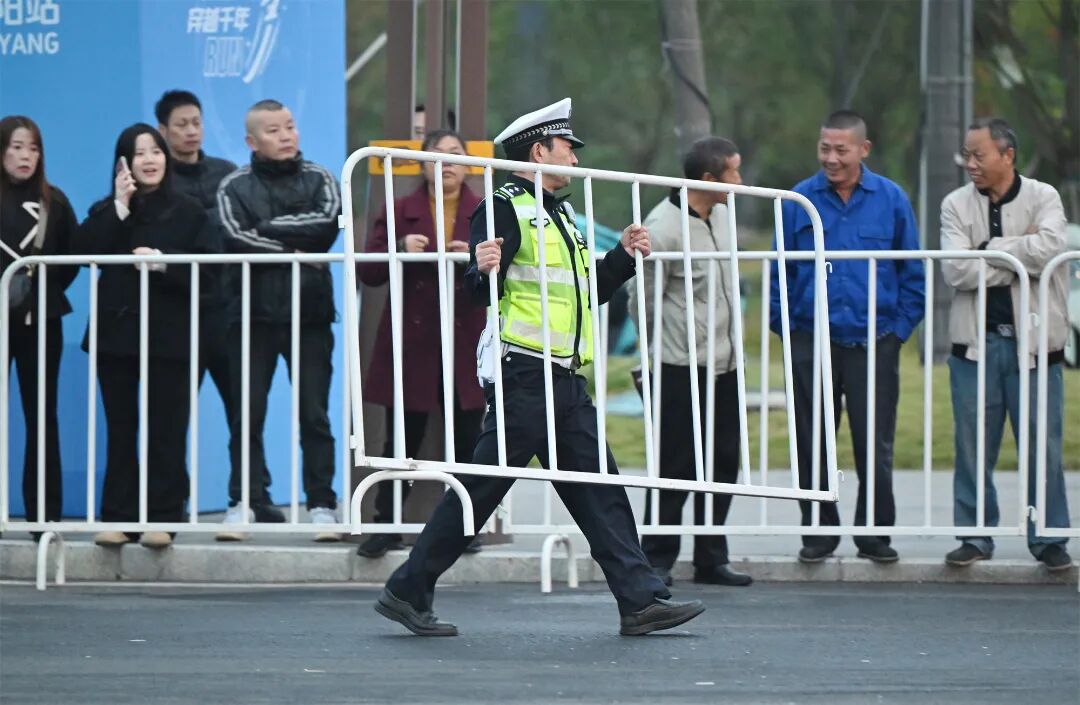 清晨4時(shí),執(zhí)勤民輔警集結(jié)上崗,排查安全隱患,布設(shè)警戒設(shè)施,疏導(dǎo)交通流線,確保各項(xiàng)安保工作緊張有序進(jìn)行,他們是賽場(chǎng)最早“就位”的“選手”。