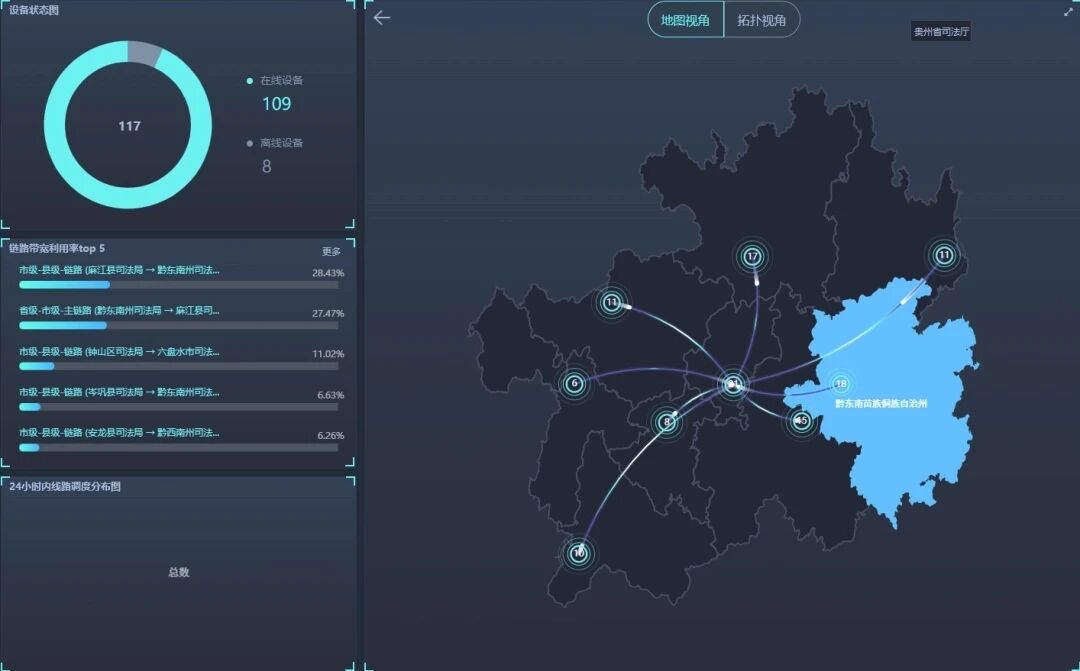 在“法治貴州云”建成前,貴州省司法行政系統(tǒng)運(yùn)行的是一張2011年建成的、覆蓋省、市、縣、鄉(xiāng)四級(jí)的獨(dú)立專(zhuān)網(wǎng)。但隨著時(shí)代發(fā)展,逐漸顯露出“維護(hù)成本高、帶寬資源緊”的疲態(tài)。