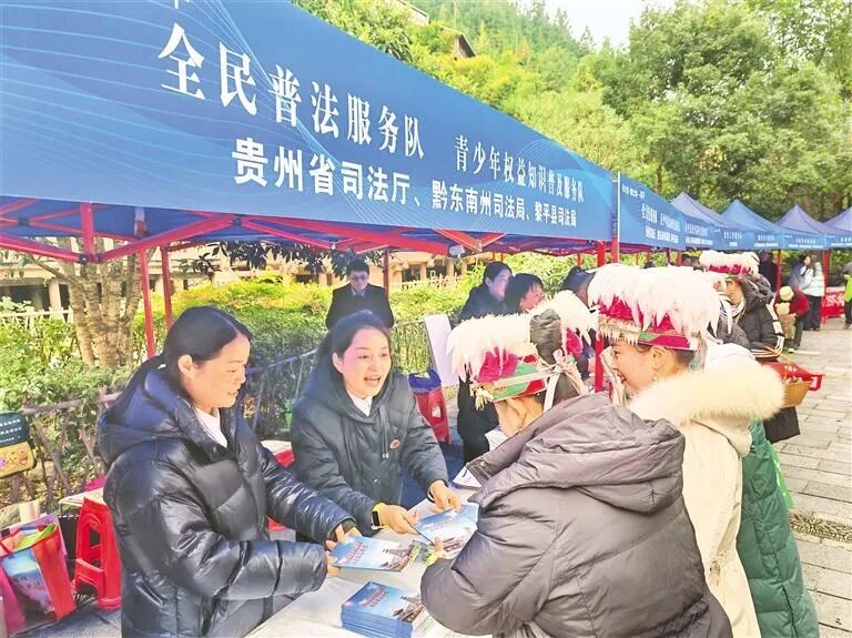 從省級層面的專題研討到基層的“院壩宣講”,從黨校課堂的系統教學到網絡平臺的大眾化解讀,貴州構建起全方位、多層次、立體化的習近平法治思想學習宣傳體系。制定《貴州省法治宣傳教育條例》,成立省法治宣傳中心,打造“法賜力”普法品牌,以及“黔曉法”“黔微普法AI幫幫”等原創欄目,聯合《法治日報》開通“法治網?法治黔行”頻道,今年“黔微普法”直播間已開播32場,吸引1200多萬人次互動,讓法治聲音傳遍千山萬水。在黔東南州的苗族村寨,村干部用苗語講解民法典;在布依族村寨,“法律明白人”結合“三月三”節慶開展法治宣傳;在侗族大歌之鄉,非遺代表性傳承人將法治故事編進歌詞,讓習近平法治思想在民族文化的浸潤中落地生根。