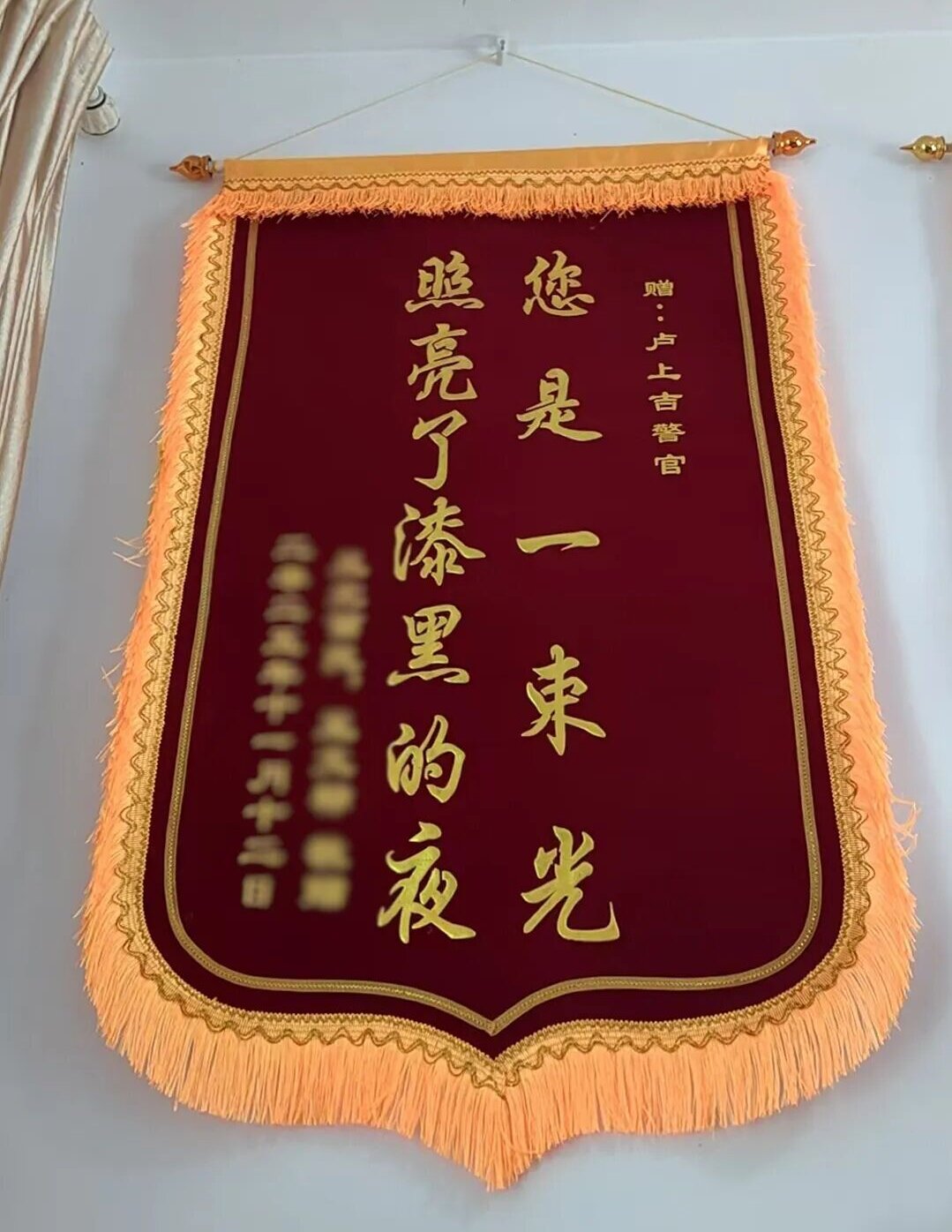 感動不止于點贊轉發,王先生決定用行動傳遞這份善意。“我雖然不在家鄉,但看到民警們這么用心守護家鄉的老人,必須表達我的敬意?!币蛲跸壬L期在浙江工作,無法當面將錦旗送到民警手中,所以他通過網絡查到了木杠邊境派出所的地址和聯系方式,特意從網上定制了一面錦旗,寄往文山邊境。