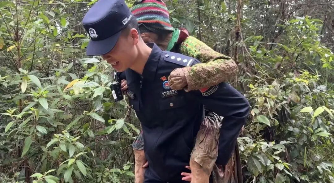 最終,在半山腰的路邊,他們找到了失聯的老人。此時老人的衣服已全部打濕,膝蓋以下的褲腿裹著厚重的泥塊,因長時間未進食飲水、受凍受涼,身體十分虛弱。盧上吉當即上前蹲下身子,穩穩地將老人背起,在濕滑的泥路上一步步前行,安全將老人送回家中。