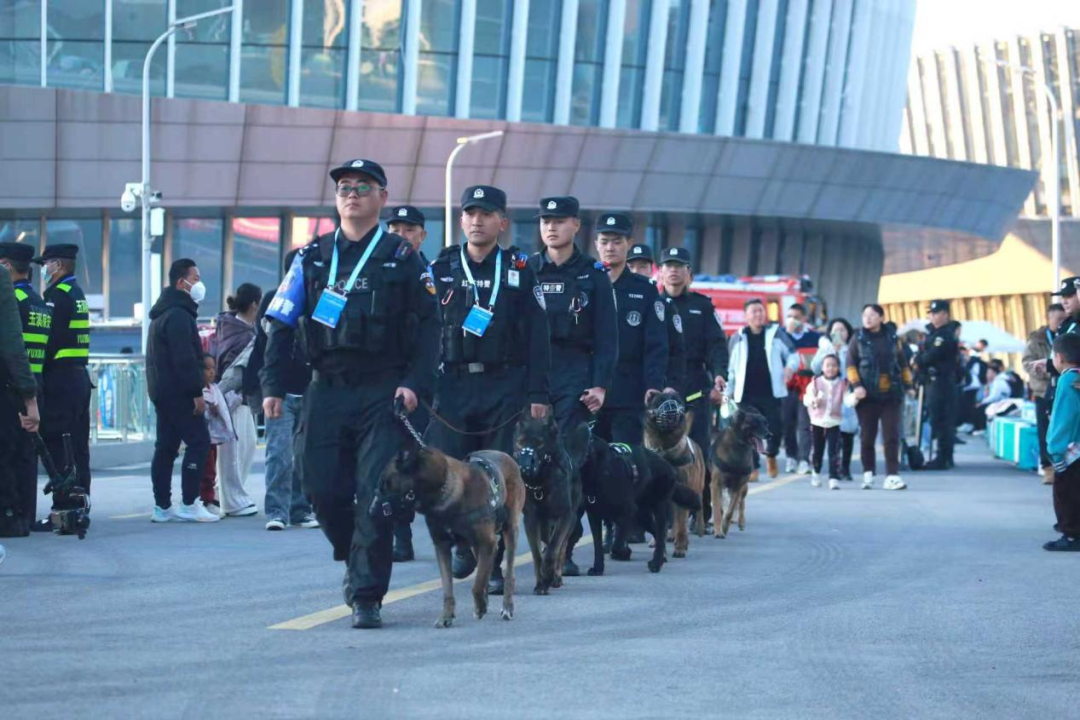 賽場之外,治安巡邏犬更是行走的“安全感擔(dān)當(dāng)”。它們身著專屬“執(zhí)勤標(biāo)識”,與民警組成機(jī)動巡邏組,穿梭在人群密集的入口、停車場及周邊街道。昂首挺胸的姿態(tài)、整齊劃一的步伐,配上警惕掃視四周的眼神,盡顯巡邏“硬漢”風(fēng)范,讓不法分子望而卻步。