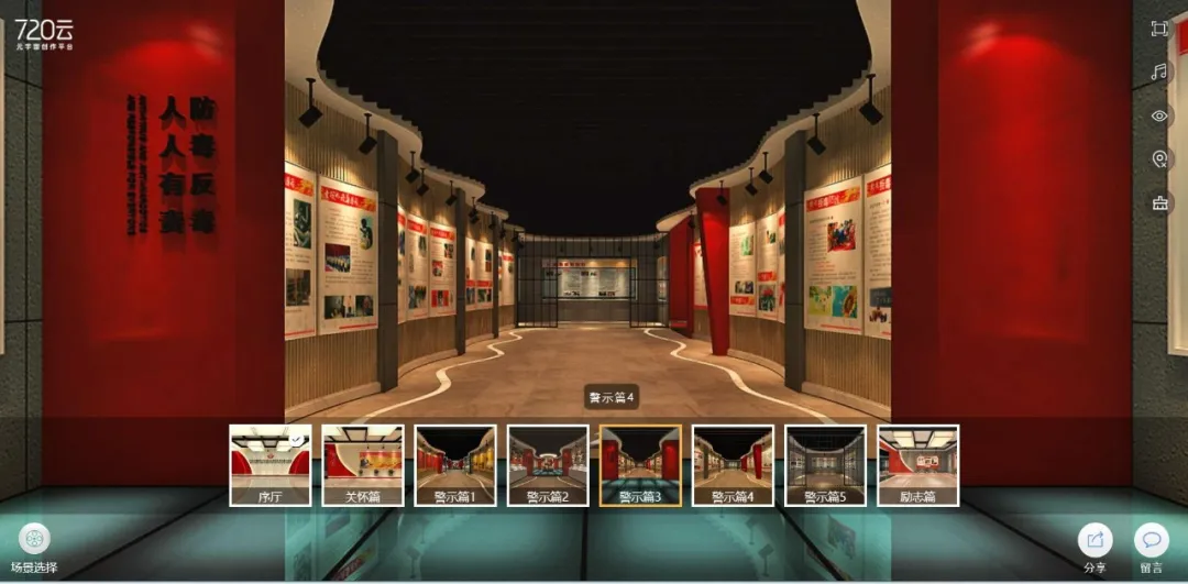 大理州預(yù)防青少年違法犯罪禁毒防艾教育基地打造的3DVR數(shù)字展廳,則是一個集聲音、圖像、文字、視頻、動畫于一體的富媒體網(wǎng)絡(luò)互動平臺。參觀者只需通過手機(jī)等網(wǎng)絡(luò)終端掃描基地專屬二維碼,或是佩戴VR頭套,便能身臨其境般踏入高度互動的3D虛擬現(xiàn)實環(huán)境,沉浸式探索展廳的豐富內(nèi)容。