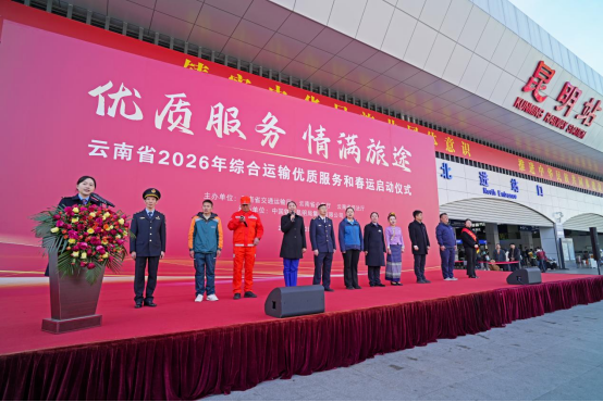 本次活動由云南省交通運輸廳、省公安廳、省司法廳、省委網(wǎng)信辦聯(lián)合主辦,中國鐵路昆明局集團有限公司承辦。省直相關(guān)部門負責(zé)人、綜合運輸春運工作一線代表及行業(yè)從業(yè)人員齊聚現(xiàn)場,共同拉開2026年云南春運工作序幕。