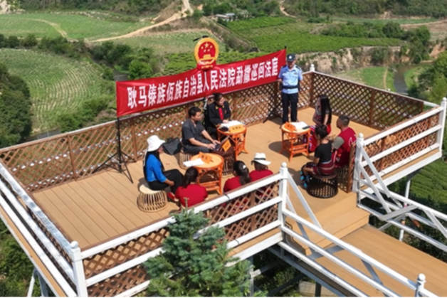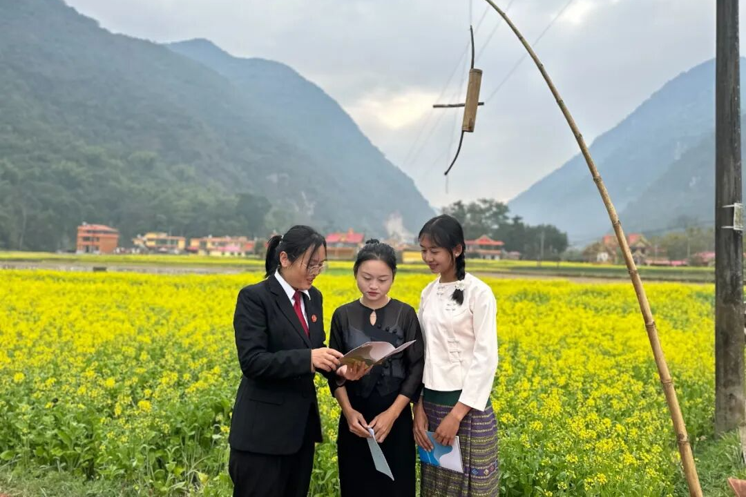“無水不成稻,無規(guī)則不成田”“稻谷分秧要勻,權(quán)利義務(wù)要清”,干警們把庭審搬進(jìn)稻田、搬到院壩、設(shè)在村口,便有了“田埂上的巡回法庭”。2025年勐撒法庭共組織開展普法宣傳20場次、巡回審判15場次,覆蓋轄區(qū)10個村寨,通過用鄉(xiāng)土語言、農(nóng)耕智慧解釋法理,讓村民群眾“零距離”接受法治熏陶,從源頭培育“無訟”土壤。