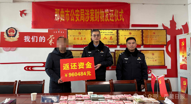 “沒想到這么快就能拿回被侵占的資金,太感謝民警同志了!”12月4日,在那曲市公安局舉行的“11·15”職務侵占案涉案財物發還儀式上,受害單位代表從民警手中接過全額追回的960484元錢款時,激動地說道。儀式現場,涉案現金經過仔細清點后整齊碼放,那曲市公安局經偵支隊辦案民警將其逐一正式移交。
