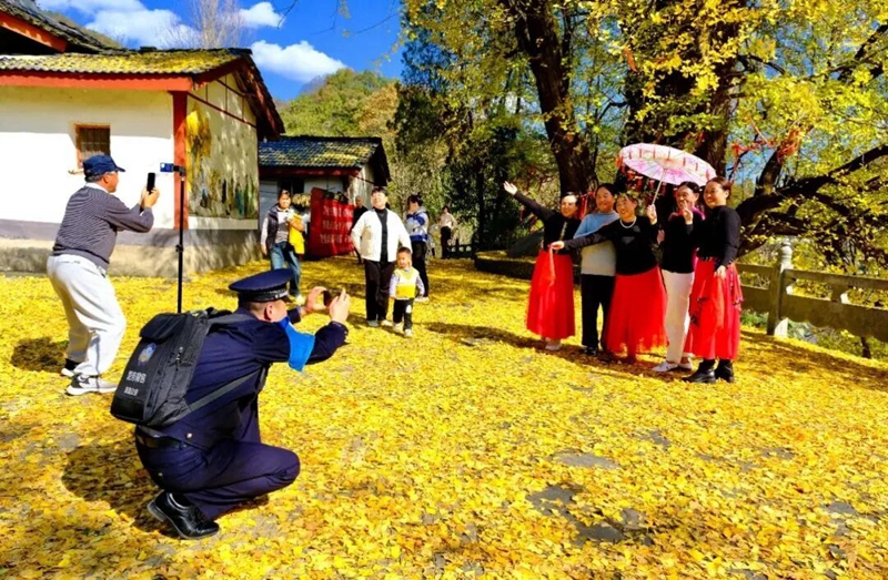 被秋色渲染的詩和遠方背后,“警察藍”早已與山水和諧同框。晨霧中,成縣公安的無人機如雄鷹掠過雞峰云海;金黃的稻田里,“駐村輔警”用鄉音化解著鄰里糾紛;徽縣嘉陵江畔,特警的身影在江風中堅定挺立。這些畫面共同繪就了一幅新時代的“警旅融合圖”。