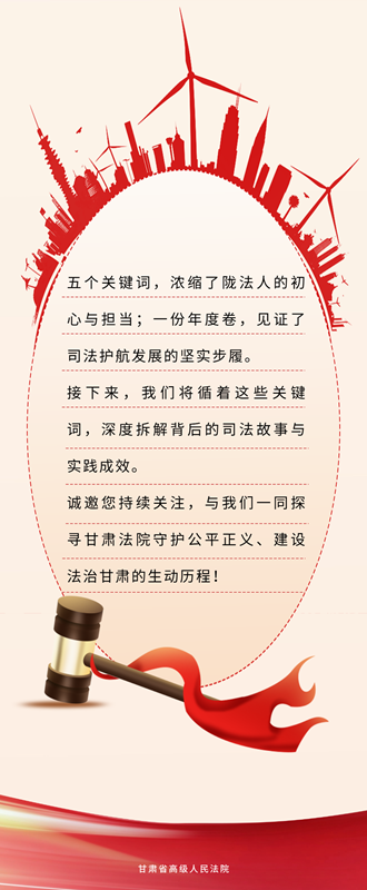 發展需要穩定環境,法治就是最好的保障。我們不做司法“旁觀者”,主動立足職能找準服務切入點,聚焦商事糾紛、知識產權保護、生態環境治理等關鍵領域,用公正裁判厘清規則、明晰邊界,以府院聯動凝聚合力、破解難題,全力把司法服務送到發展最需要的地方,讓法治成為隴原經濟社會高質量發展的“穩定器”與“助推器”。