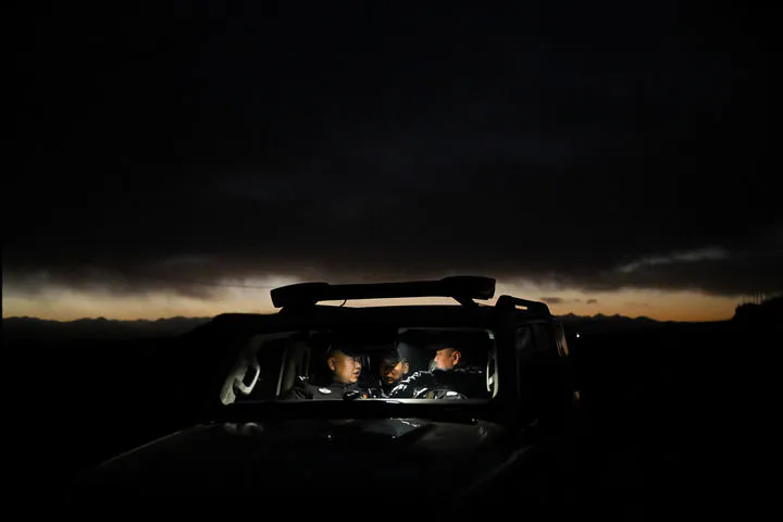1月8日,在青海省門(mén)源縣境內(nèi)的老虎溝,民警和生態(tài)管護(hù)員在進(jìn)行巡護(hù)。