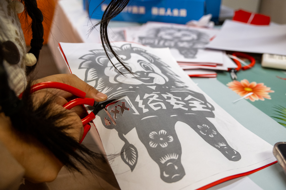 這個小小的法治文化集市里,不只有“彭小司”。非遺傳承人陳玉慧一雙巧手正在飛快地剪著紙,不大一會兒,栩栩如生的彭小司“安全上網”圖案就在她的手里誕生了。