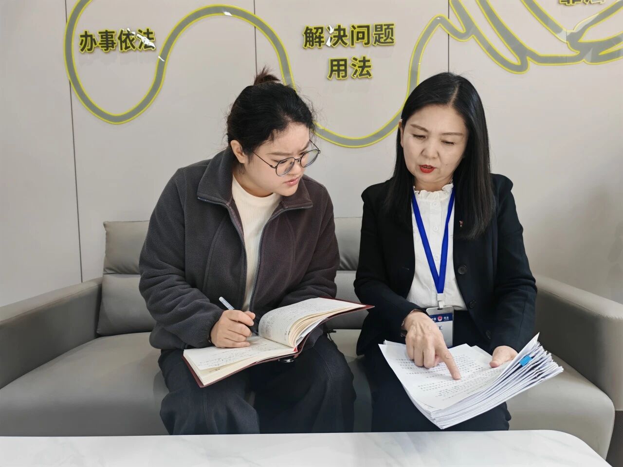 3月4日一大早,賀蘭縣沙海路行政復(fù)議暨法治工作站(“法治曉站”)里,專職人民調(diào)解員楊玉梅拿起一份厚厚的維修合同,湊到值班律師孫秀艷跟前:“幫我瞅瞅,這里頭的條款,我拿捏得還不太準(zhǔn)。”