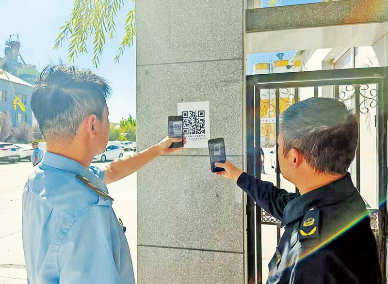 察布查爾錫伯自治縣執(zhí)法部門工作人員開(kāi)展“掃碼入企”聯(lián)合檢查。通訊員范如贊攝