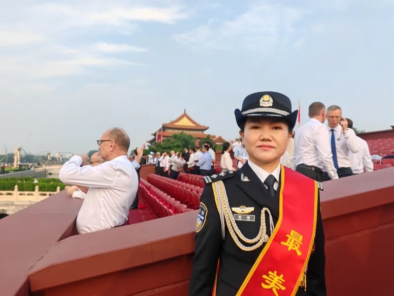 全國“最美基層民警”、木壘哈薩克自治縣公安局刑事偵查大隊大隊長香憬受邀赴天安門廣場參加紀念中國人民抗日戰爭暨世界反法西斯戰爭勝利80周年閱兵式觀禮(9月3日攝)。單杏花攝