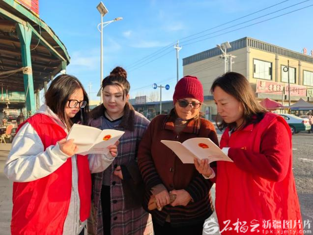 2025年12月,志愿者向群眾發放自治區婦女權益保障條例宣傳手冊。自治區婦聯供圖