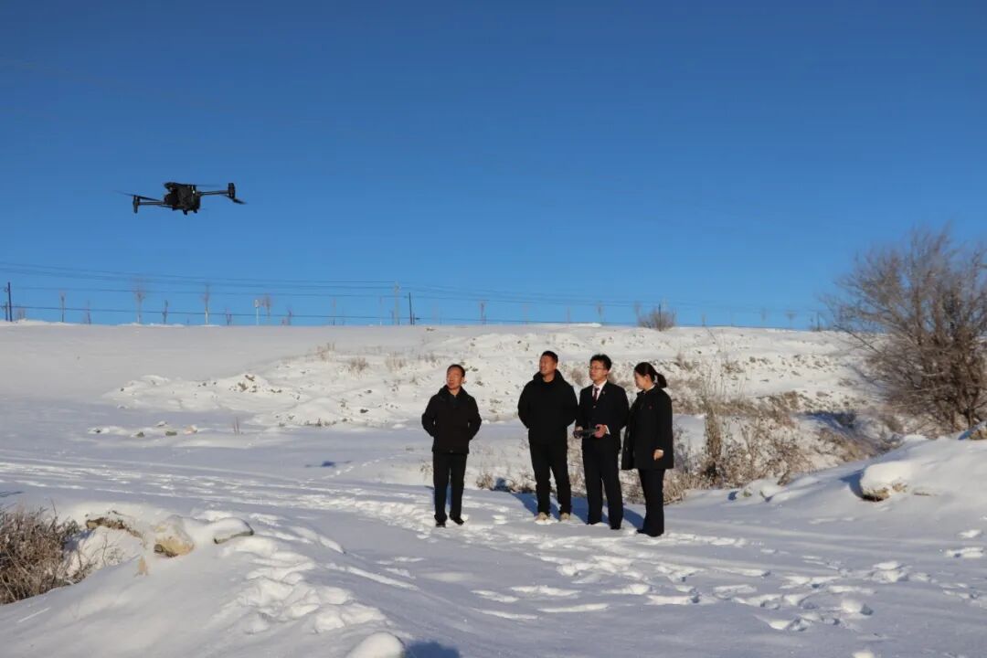 盡管河道已被冰雪覆蓋,巡河組的工作卻并未停歇。此次巡河采用“現場查看+無人機航拍”相結合的方式,確保監管無死角、無盲區。巡河組沿河而行,重點查看河道兩岸是否存在非法采砂留下的痕跡、是否有生活垃圾或建筑垃圾違規傾倒、河岸設施是否完好。