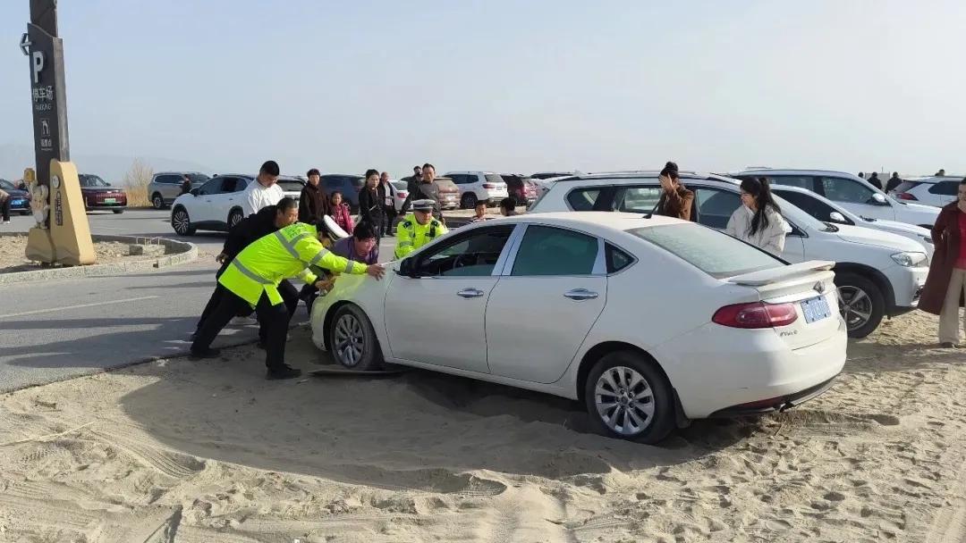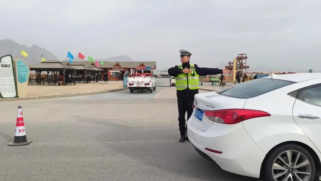 “前方停車場(chǎng)車位已滿,請(qǐng)各位游客根據(jù)指引前往臨時(shí)停放點(diǎn),注意行車安全!”