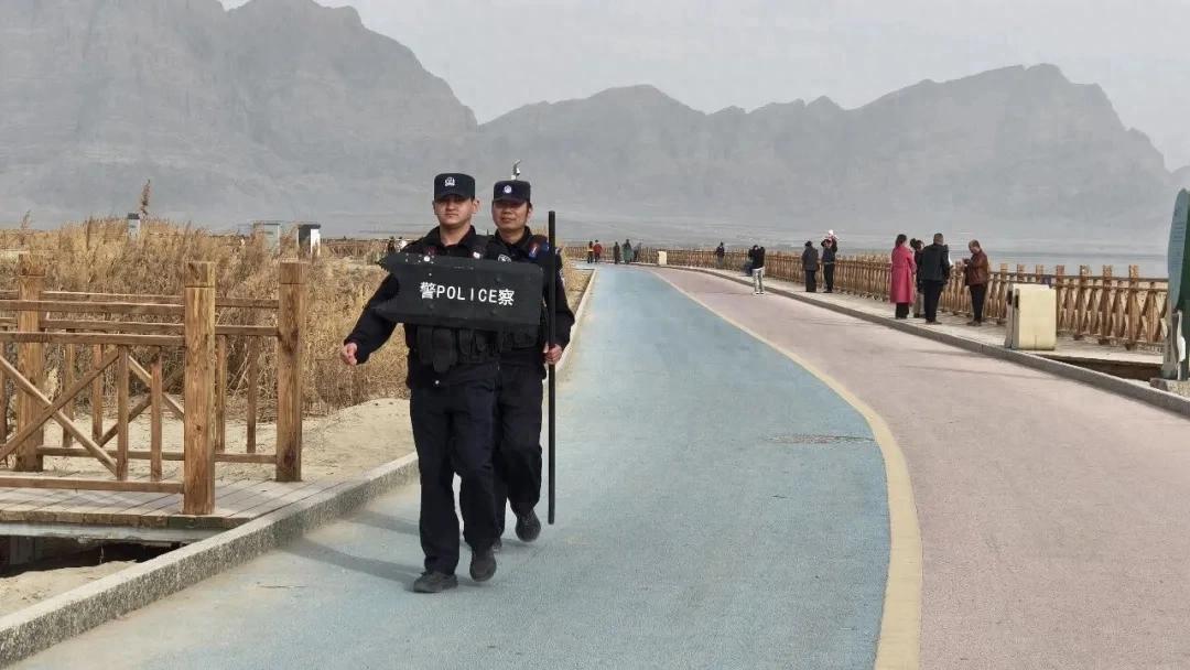 2026年春節(jié),當(dāng)萬(wàn)家燈火映照著團(tuán)圓暖意,有著“塞外江南”美譽(yù)的永安湖生態(tài)旅游區(qū)張燈結(jié)彩、暖意融融,園內(nèi)游人如織、熱鬧非凡。冰雪覆岸、詩(shī)意盎然的美景間,新疆生產(chǎn)建設(shè)兵團(tuán)第三師圖木舒克墾區(qū)公安局海安派出所永安湖景區(qū)警務(wù)室的全體民警輔警,以腳步丈量平安,用堅(jiān)守詮釋擔(dān)當(dāng),那抹亮眼的“警察藍(lán)”,成為景區(qū)里最溫暖、最可靠的“平安底色”,與湖光山色相映成景。