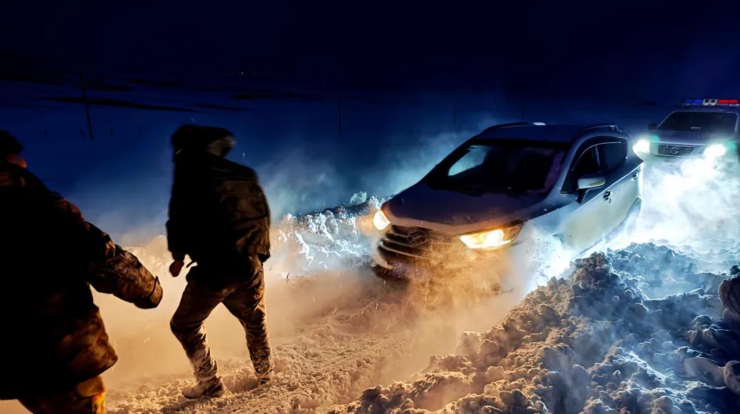 風雪救援,被困車輛順利脫險